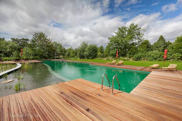 Amenities at the hotel include the natural swimming pool area, where guests can swim, lounge in the sun on the sun deck and enjoy the surrounding greenery. There is also a sauna village where guests can relax in rustic wagons that contain saunas and light-flooded relaxation rooms.